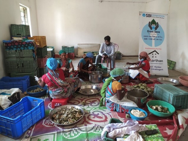 जिला मुख्यालय से सुदूर स्तिथ कोकपुर ग्राम पंचायत के आश्रित ग्राम खमदोडगी प्राकृतिक सौंदर्य से परिपूर्ण यह गाँव जहां की महिलाएं आज भी परम्परिक कार्य कर रही थी ऐसे में इनके आय का साधन भी सिमित था| एसबीआई फाउंडेशन का ग्राम सेवा कार्यक्रम इस गाँव में संचालित है जो निरंतर ग्रामीण महिलाओं के उन्नति के लिए कार्यरत है | इस गाँव की एक महिला समूह जो एक नवीन पहल कर रही थी खमदोडगी की जय मावली माता स्व -सहायता समूह की इन महिलाओं ने सीताफल पल्प प्रोसेसिंग यूनिट की शुरुवात की थी | परन्तु आवश्यक संसाधन तथा तकनिकी ज्ञान की कमी से शुरवात में इन महिलाओं को अधिक मात्र में सीताफल के खरीदी तथा उसके प्रस्करण में दिक्कतों का सामना करना पड़ता था | महिलाओं की इन समस्या को एसबीआई फाउंडेशन ने अवसर के रूप में देखा और इन्हें सर्वप्रथम तकनिकी तथा मशीनी सहयोग प्रदान किया साथ ही इसके अतिरिक्त सीताफल पल्प के स्टोरेज के लिए फ्रीजर भी प्रदान किया गया | इन सहयोगों के परिणाम स्वरुप इस वर्ष जय मावली माता स्व -सहायता समूह की महिलाओं ने 9 क्विंटल से अधिक का सीताफल पल्प का उत्पादन किया | इस से पहले यह समूह मात्र 5 से 6 क्विंटल का उत्पादन ही कर पाते थे | इसके अतिरिक्त इन उत्पादन का मार्केटिंग भी बड़े पैमाने समर्थन एसबीआई फाउंडेशन के सहयोग से किया जा रहा है | इस तरह समर्थन एसबीआई फाउंडेशन के हस्तक्षेप से सीताफल पल्प प्रोसेसिंग के माध्यम से ग्रामीण महिलाओं की आजीविका बढ़ाने में समर्थन एसबीआई फाउंडेशन उत्प्रेरक (catalyst) के रूप में निरंतर महत्वपूर्ण भूमिका निभा रहा है |