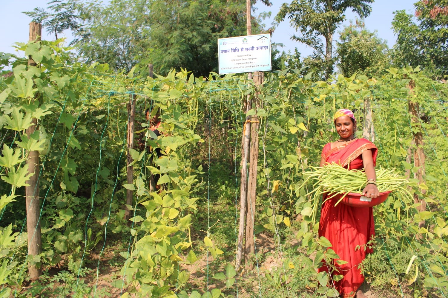 In collaboration with the Samarthan- Centre for Development Support and SBI Foundation, the SBI Gram Seva program has been launched in five villages of Kanker district, where 90% of the population is tribal and completely dependent on agriculture. With the aim of improving their nutrition and livelihood, scaffolding cultivation was done in 100 families of 5 villages.