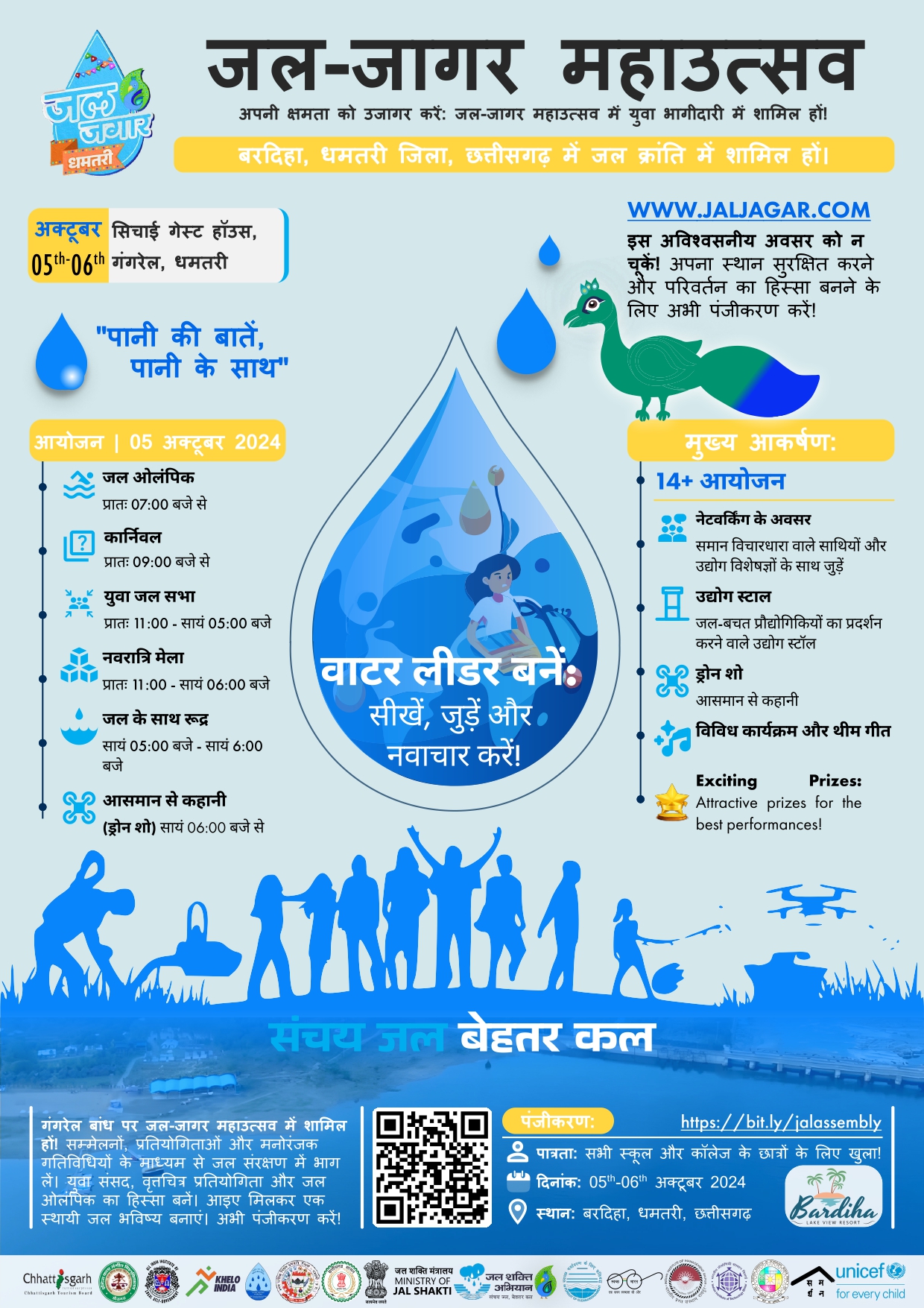 धमतरी: पानी की समस्या को देखते हुए धमतरी जिले में जल संवर्धन के उद्देश्य से चलाए गए अभियान की सफलता के बाद, जिले में “जल जागर महोत्सव” का आयोजन किया जा रहा है। यह महोत्सव जल संरक्षण के प्रयासों को सार्वजनिक करने और भविष्य की रणनीतियों पर विचार-विमर्श करने के लिए आयोजित किया जा रहा है।