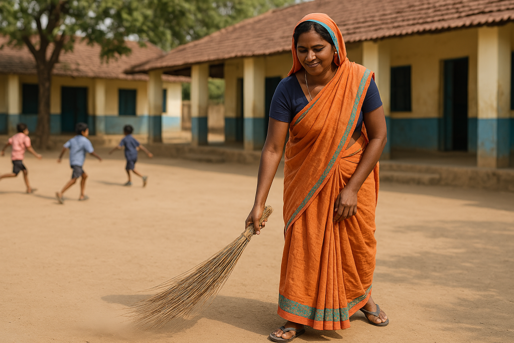 उनका कार्यकाल सुबह 7:30 से 10:30 बजे तक होता है, और दोपहर भोजनावकाश के समय 1:30 से 2:30 बजे तक अतिरिक्त समय में भी वे सफाई करती हैं — जबकि यह उनके कार्यदायित्व में शामिल नहीं है। उन्हें प्रति माह मात्र ₹3,307 वेतन मिलता है।